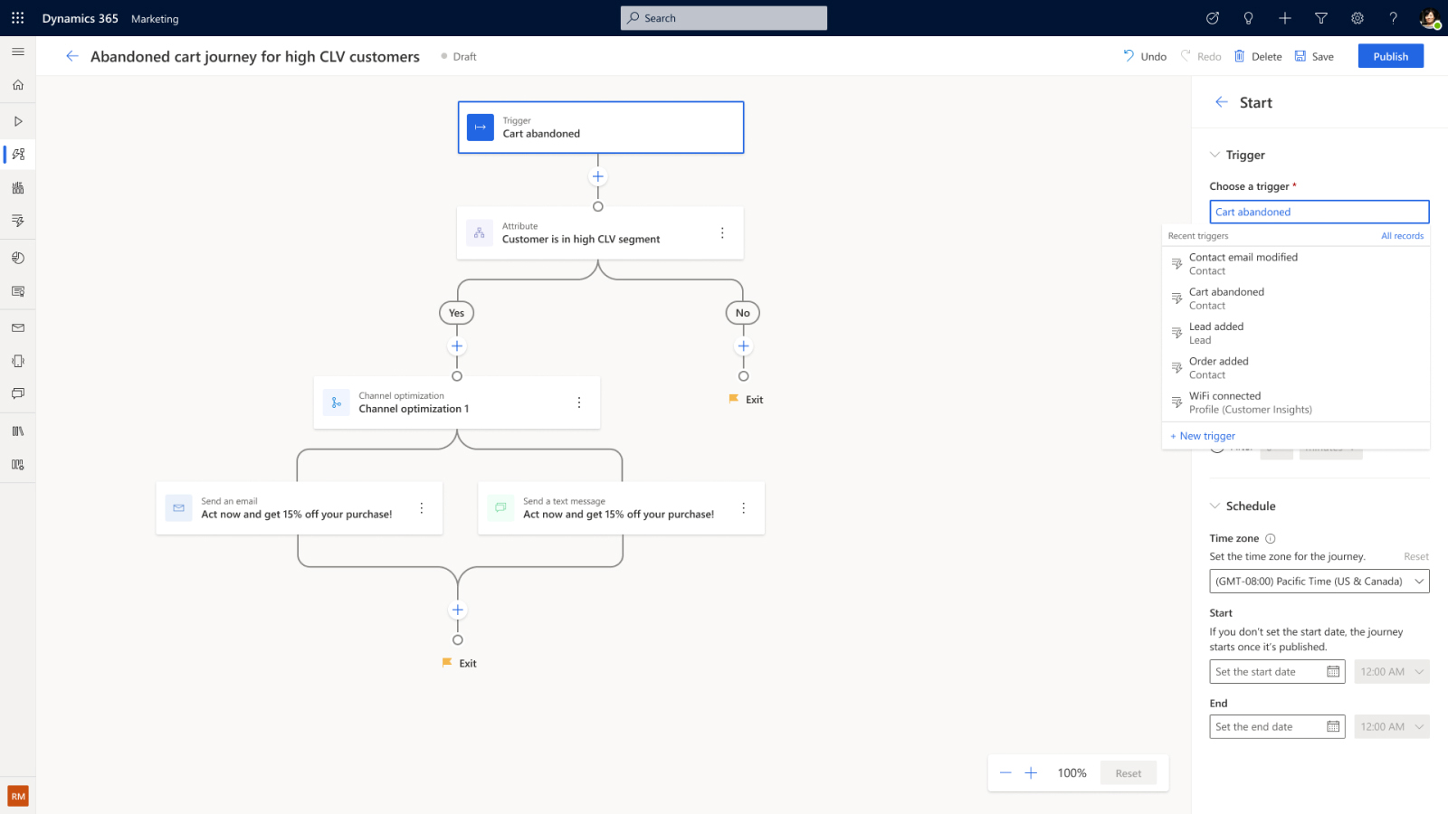 Take advantage of real-time customer data changes; Easily begin new customer journeys without developing code. Create holistic journeys based on real-time data changes across any Dynamics 365 app.