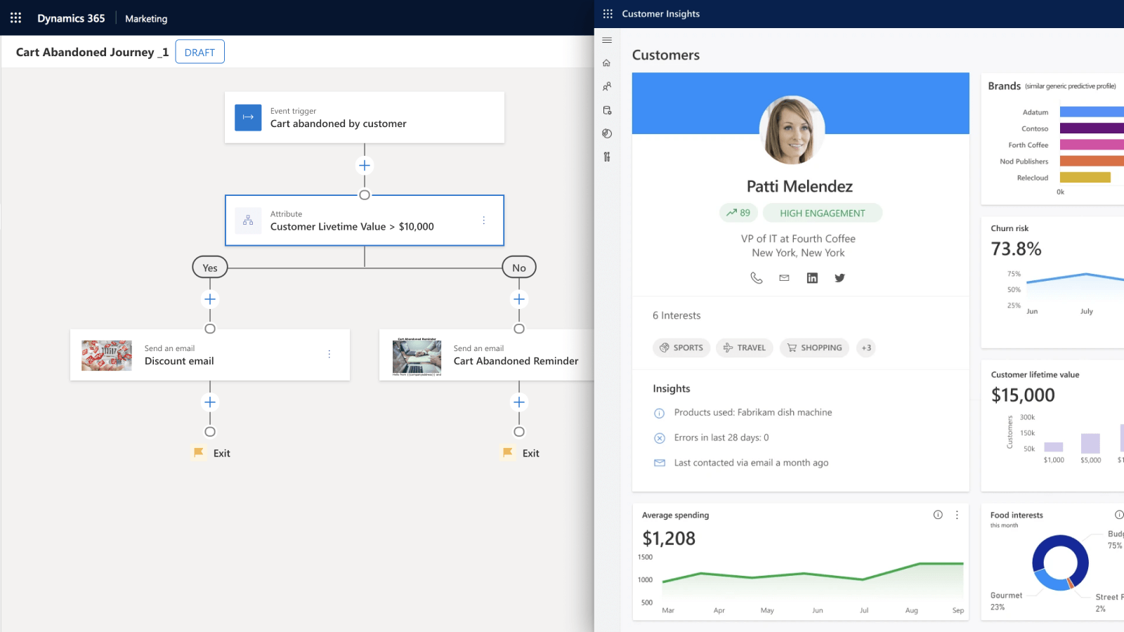 Act on a 360-degree understanding of the customer; Connect with Dynamics 365 Customer Insights to improve personalization, turn insights into relevant actions in customer journeys, and visualize customer interactions.