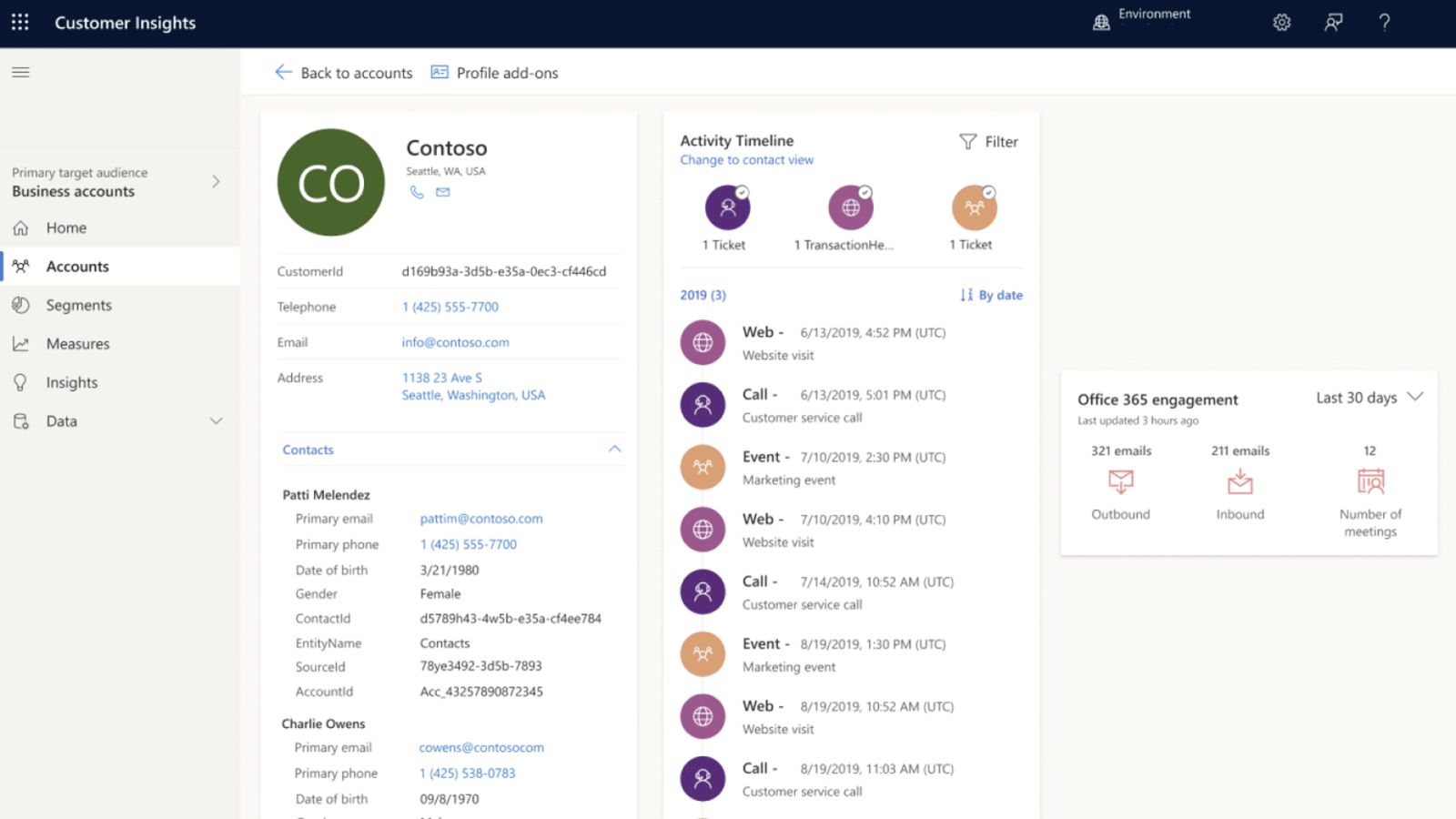 Empower marketing, sales, and service teams; Surface up-to-date customer data and insights in the Microsoft apps that your employees use every day, including Microsoft 365 and Dynamics 365 Marketing, Sales, and Customer Service.
