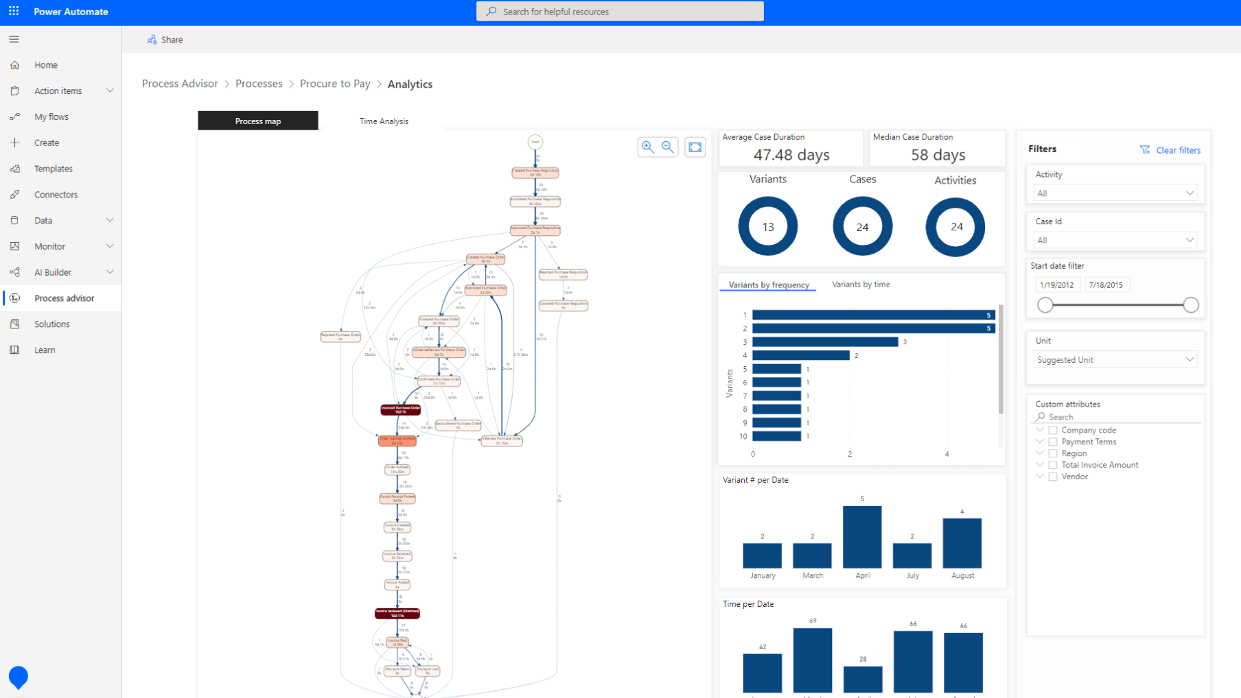 Get started quickly with the intuitive interface; Discover insights and optimization opportunities in just a few steps using process advisor.